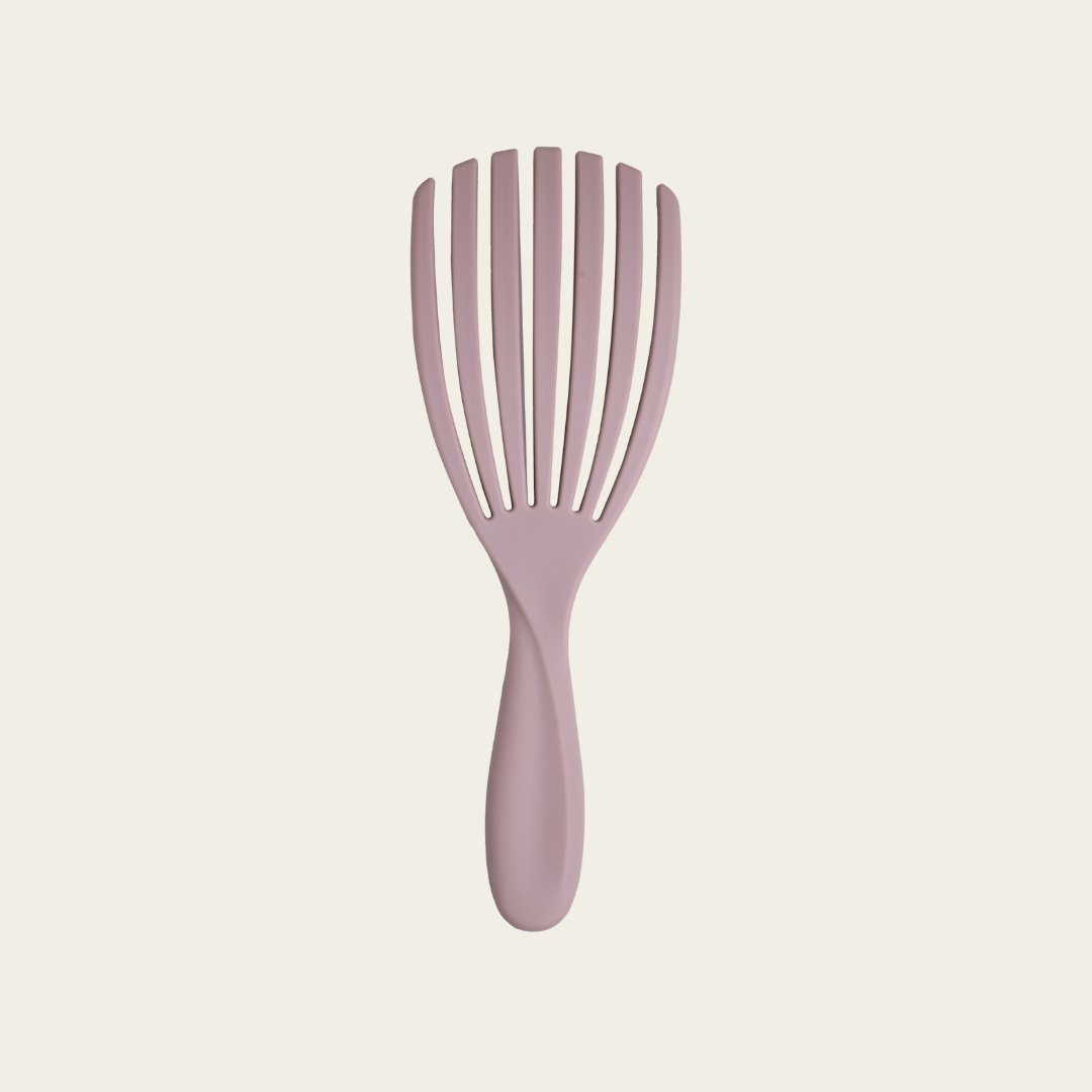 Maintain the health and style of your textured hair with our ultra-flexible hair detangling brush. Designed with wide-spaced, arched ribs, this brush moves with your hair rather than against it, ensuring a tangle-free and frizz-free grooming experience. Whether you have curly, wavy, or coily hair, this versatile tool guarantees gentle detangling, defining your curls while minimizing breakage.